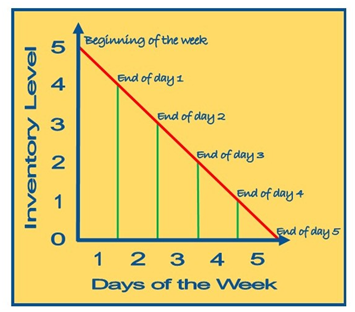 Now consider a Company K; it is using 5 units of inventory every week (5 units/week). Note the following: