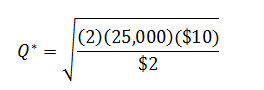 The above discussion and example represent the simplest of cases for determining EOQ. Any change in the operating conditions of inventory for a company or business will need to recalculate EOQ or Q* for the new case.