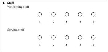 In some establishments, the level of satisfaction of the customer is often assessed by filling a formulary where he (or she) is supposed to choose a number from 1 to 5, a higher score meaning better satisfaction. Below is a partial view of such a form used in a restaurant.